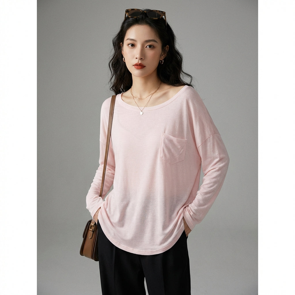 - Tipo: Corte regular, Hombro descubierto. Su corte ofrece una silueta favorecedora y moderna, con un toque de originalidad gracias a su cuello redondo y sus mangas largas.