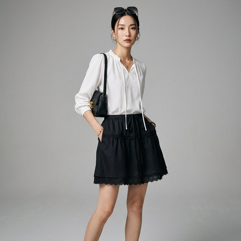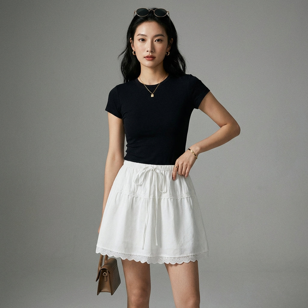 - Estilo: Moda coreana, Tendencia, Casual. Esta falda refleja la estética joven y dinámica de la K-fashion, perfecta para un look relajado y con estilo.