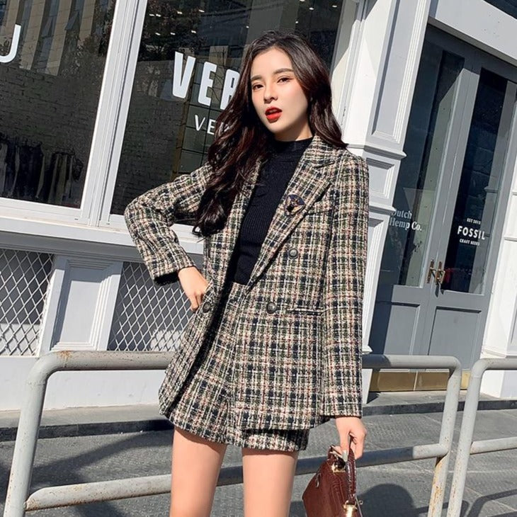 ¿Quieres ir bien vestida? ¿Buscas un conjunto elegante de Corea del Sur? Este traje de cuadros es ideal para ir bien vestida y a la moda.