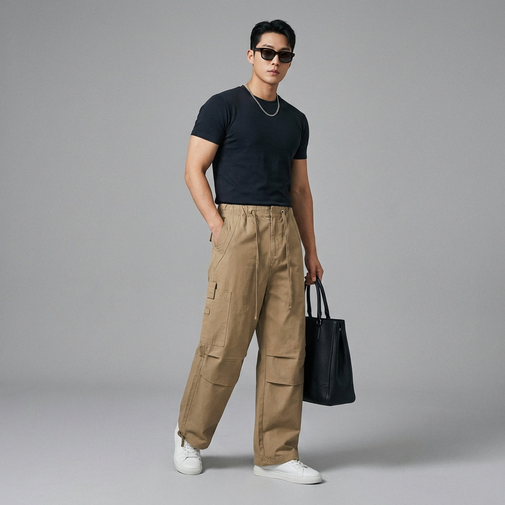 - Estilo: Streetwear, K-fashion, Urbano. Estos pantalones encarnan el espíritu relajado y moderno de la moda coreana, perfectos para un look moderno y atrevido.