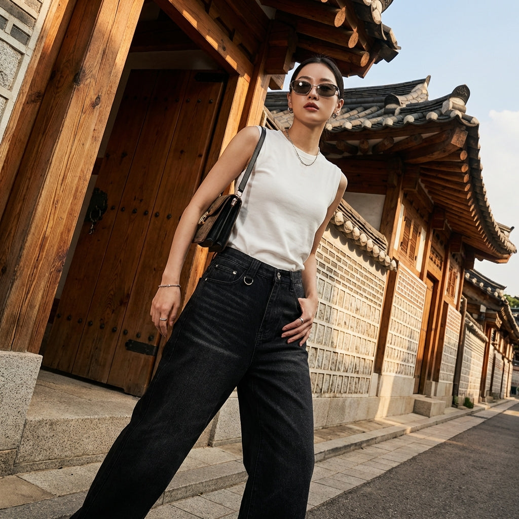 - Estilo: Streetwear, Minimalista, K-fashion. Estos jeans encarnan la esencia de la moda urbana coreana, perfectos para un look casual y con estilo.