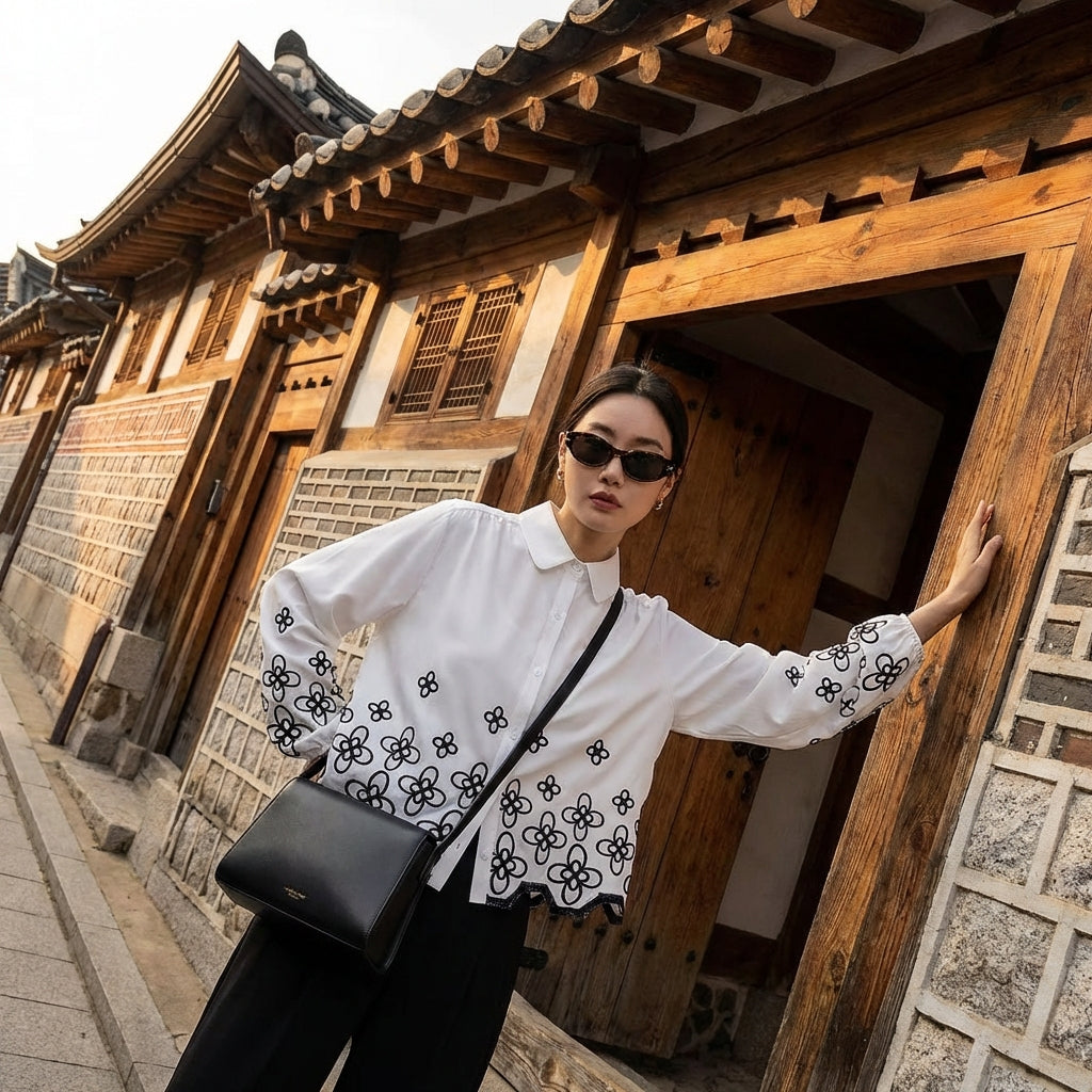 Esta camisa bordada es un imprescindible para aquellas que buscan una prenda chic, cómoda y fácil de combinar, que aporte un toque de estilo coreano a su armario.