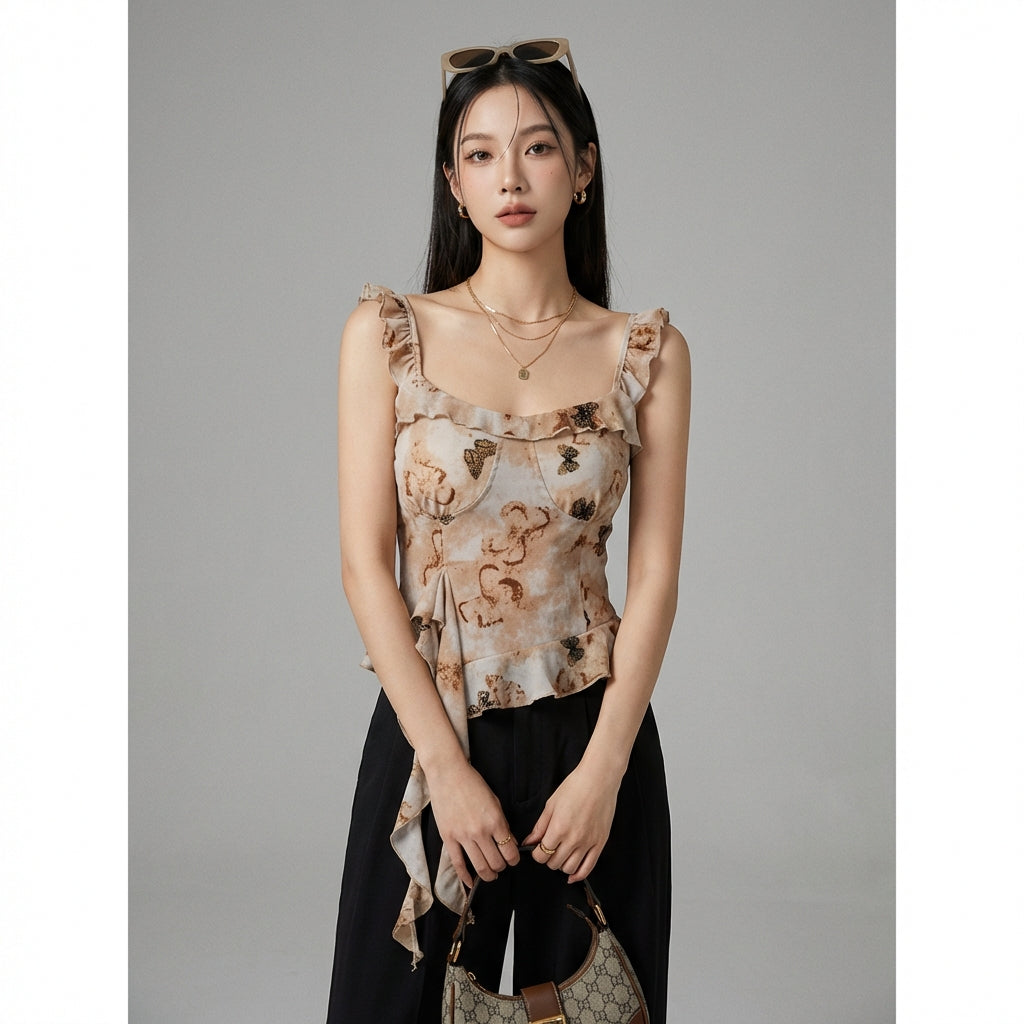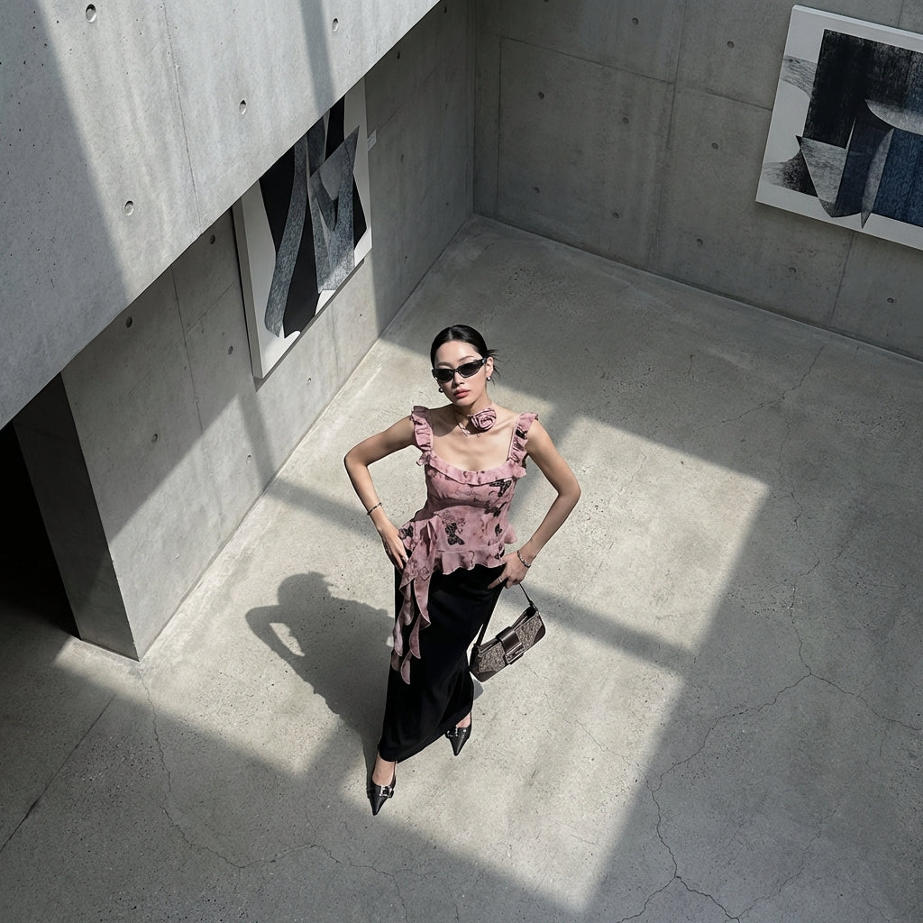 - Estilo: Moda coreana, Tendencia, Femenino, Floral, Dulce. Este top encarna el espíritu "sweet and spicy" de la moda K, mezclando romanticismo y modernidad.
