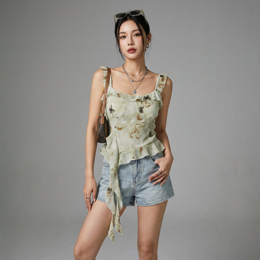 Descubre nuestro top camisola, una prenda moderna y femenina que aportará un toque de originalidad a tu armario. Con sus volantes irregulares y su delicado estampado floral, es perfecto para un look dulce y picante, ¡ideal para los días soleados! 🌸