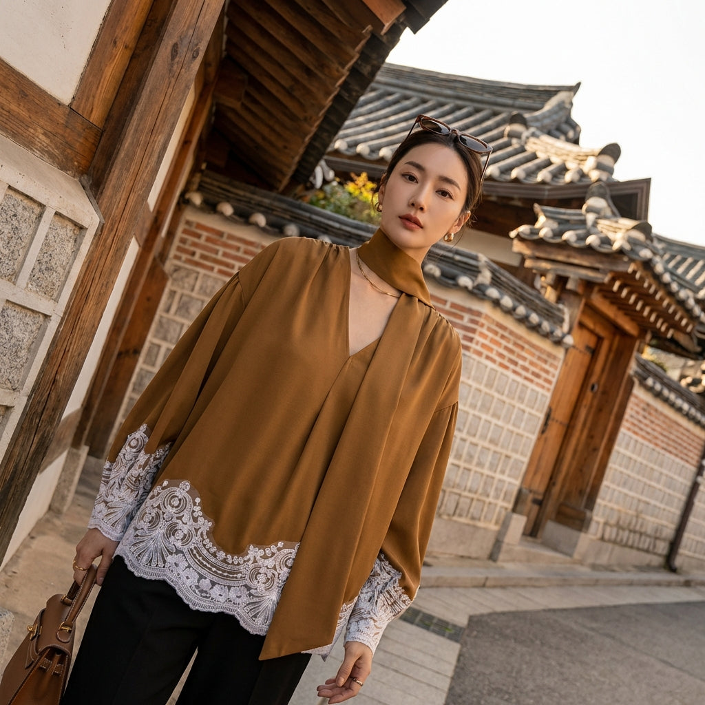 - Estilo: Minimalista, Chic, Tendencia. Esta blusa encarna la moda coreana con una elegancia refinada y un toque de modernidad.