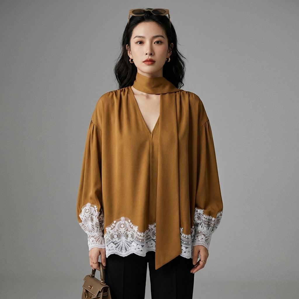 Adopte un look sofisticado con nuestra blusa de lazo y encaje, perfecta para un toque de elegancia discreta. ¡Su diseño único combina modernidad y encanto atemporal, ideal para cualquier ocasión! 🎀