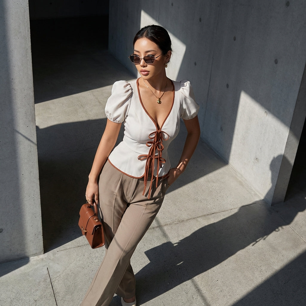 - Estilo: Moda coreana, Elegante, Office Lady. Esta blusa encarna la elegancia discreta y el profesionalismo de la moda coreana, ideal para la oficina o una salida chic.