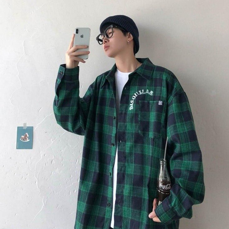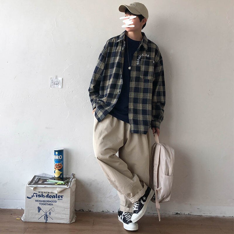 Aquí tienes una camisa a cuadros con un look plaid puesto al día con la moda coreana.