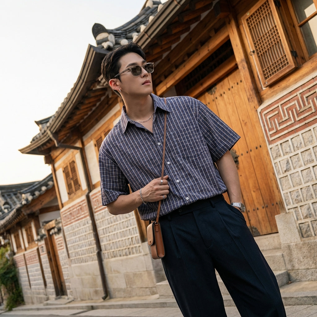 - Estilo: Streetwear, K-fashion, Casual. Esta camisa encarna la estética casual y elegante de la moda coreana y el streetwear moderno.
