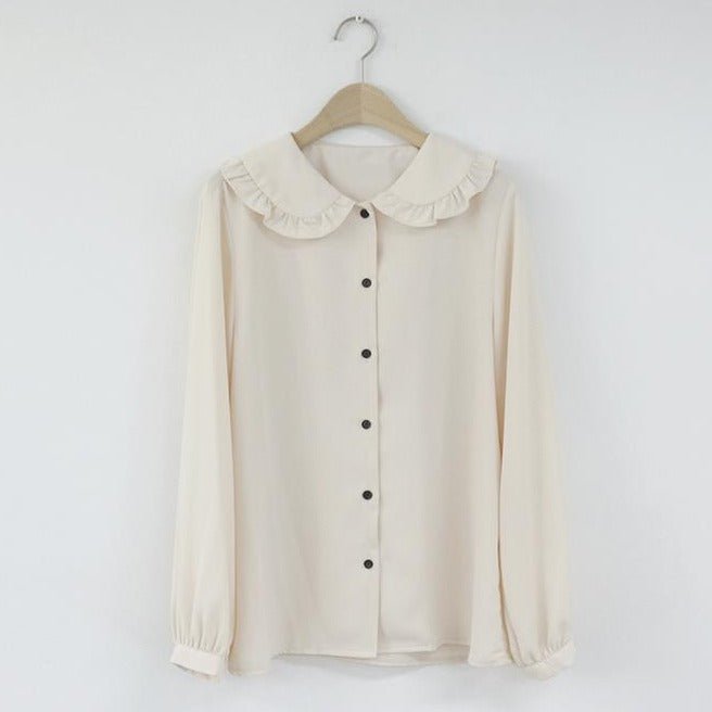 El cuello de la camisa es muy típico de Corea del Sur. El vestido está disponible en Marrón o Negro. Estos colores combinan bien con el blanco y el beige.