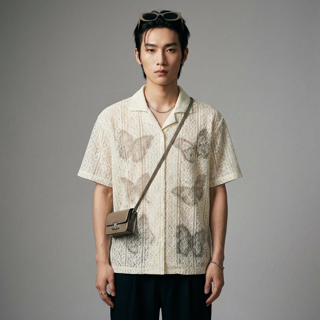 Adopta un look casual y moderno con nuestra camisa unisex con estampado de mariposas. Su corte holgado y su estilo retro americano la convierten en una prenda versátil y cómoda, ¡perfecta para todas las ocasiones veraniegas! 🦋