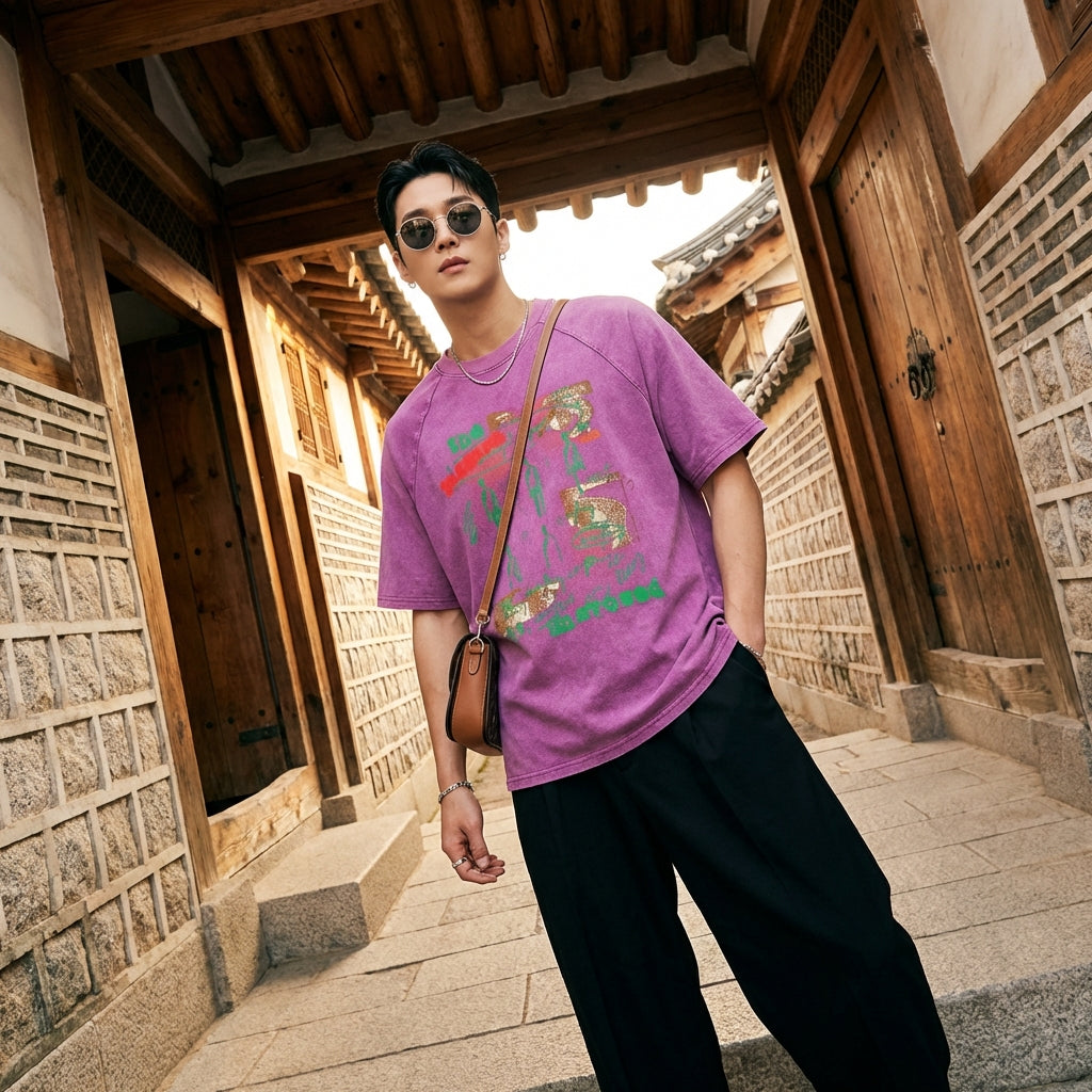 - Estilo: Streetwear, Casual, K-fashion. Esta camiseta encarna la estética relajada y estilosa de la moda urbana, inspirada en las tendencias coreanas.
