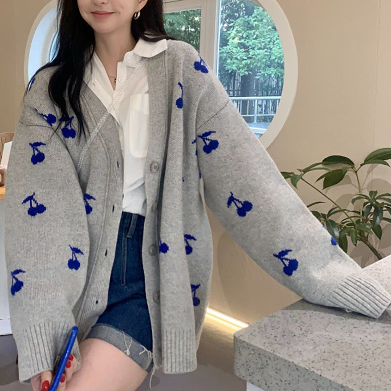 Añade un toque de encanto retro a tu armario con nuestro cárdigan cereza coreano. Este modelo con cuello en V y mangas largas es perfecto para un look casual y elegante. 🍒