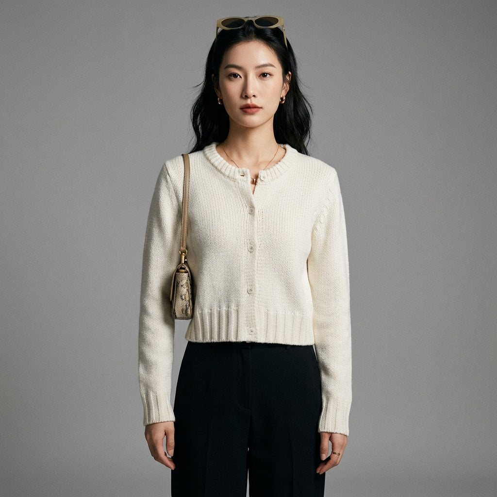 - Estilo: Moda coreana, Elegante, Minimalista. Este cárdigan encarna la elegancia discreta y moderna de la moda K, perfecto para un look sofisticado y atemporal.