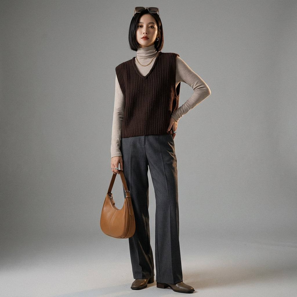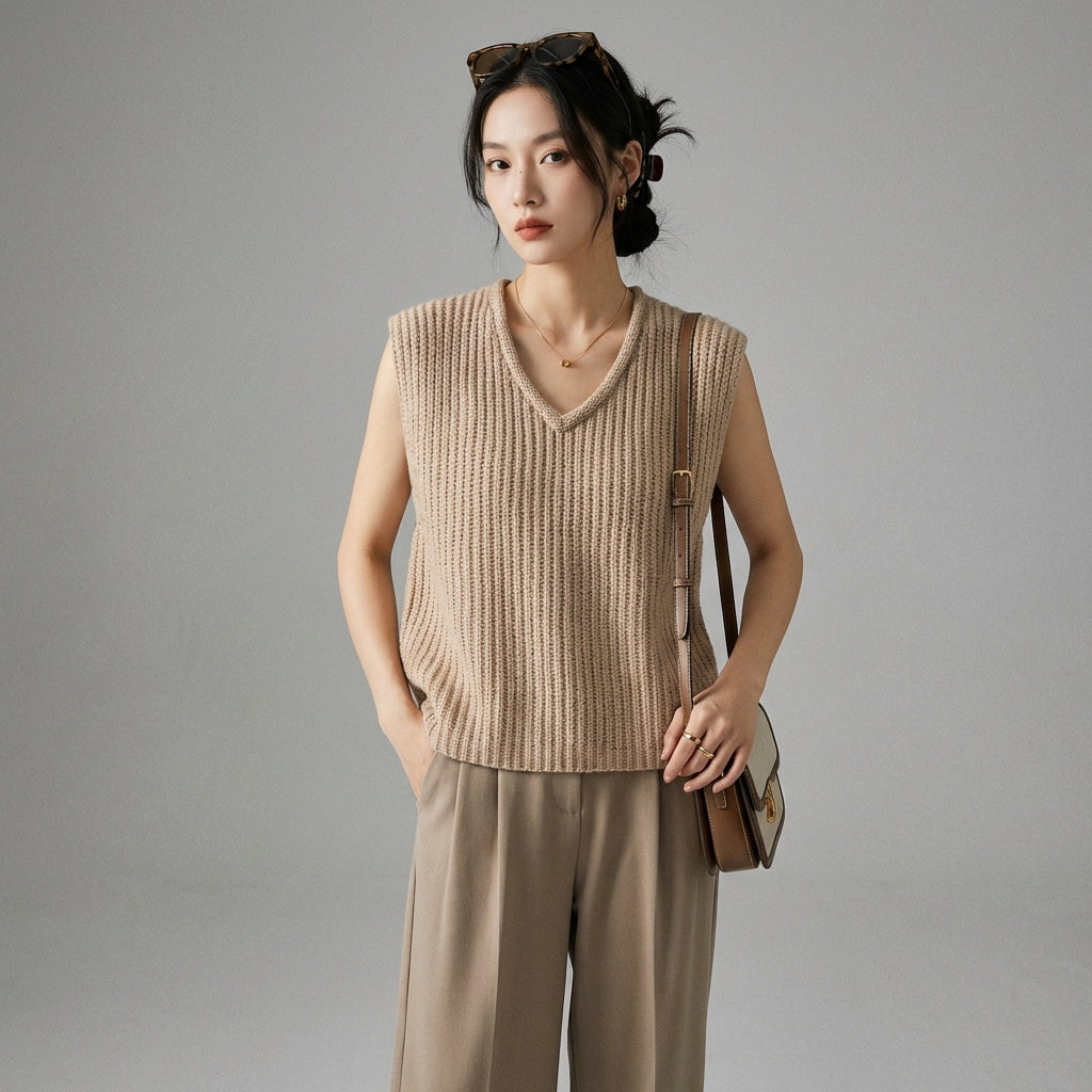 - Estilo: Minimalista, Casual, K-fashion. Este chaleco encarna la elegancia discreta y la versatilidad, perfecto para un estilo coreano moderno y cómodo.