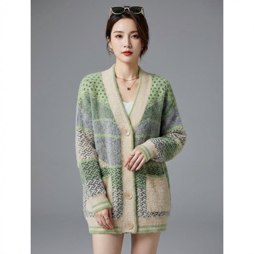 - Estilo: K-fashion, Suave, Casual, Tendencia. Este cárdigan encarna la estética "lazy style" de la moda coreana, combinando comodidad y un aspecto moderno.