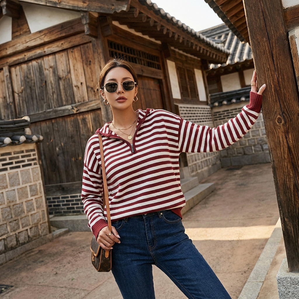 - Estilo: K-fashion, Tendencia, Casual. Este cárdigan encarna la elegancia informal de la moda coreana, perfecto para un estilo urbano y moderno.