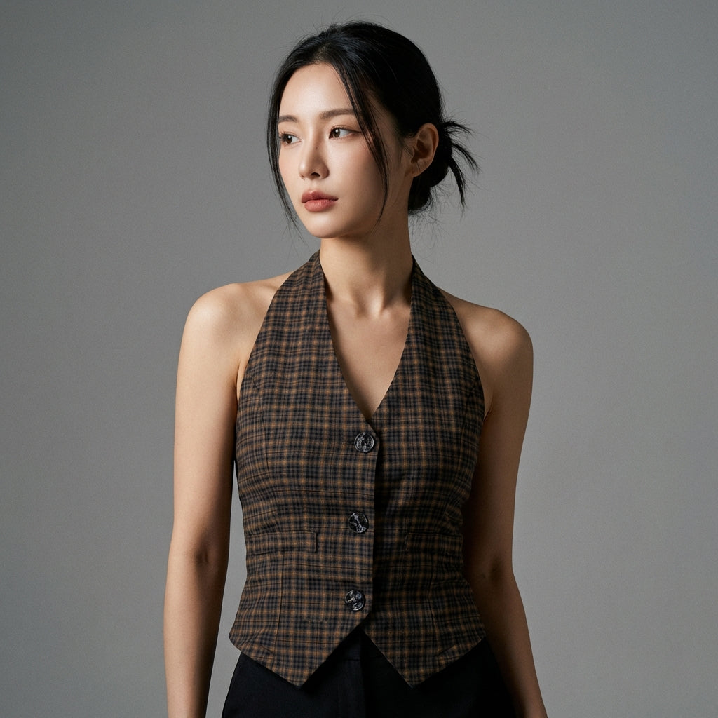 Adopta un look streetwear de moda con nuestro cárdigan retro a cuadros. Este modelo corto, con cuello en V y mangas cortas, se cierra con botones para un estilo casual y chic. ¡Perfecto para añadir un toque vintage a tu atuendo! 🤎