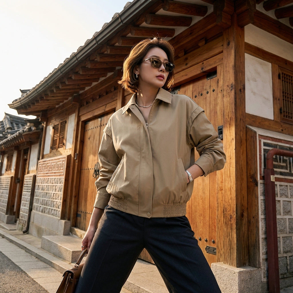 - Estilo: K-fashion, Casual, Elegante. Esta chaqueta encarna el espíritu de la moda coreana con un toque de sofisticación, ideal para un look urbano o una salida con amigos.