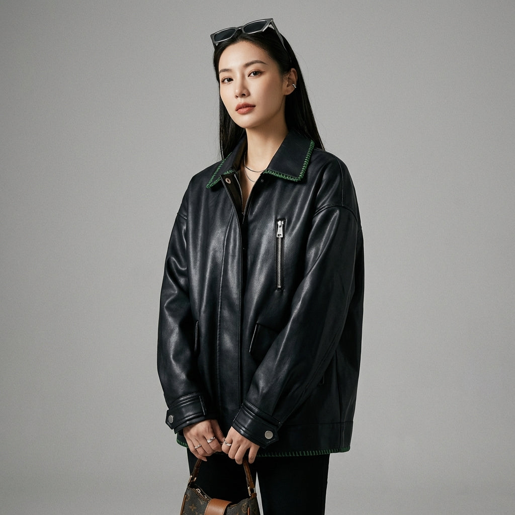 - Estilo: Streetwear, Tendencia, K-fashion. Esta chaqueta encarna el dinamismo y la audacia de la moda urbana, ideal para un look atrevido y contemporáneo.