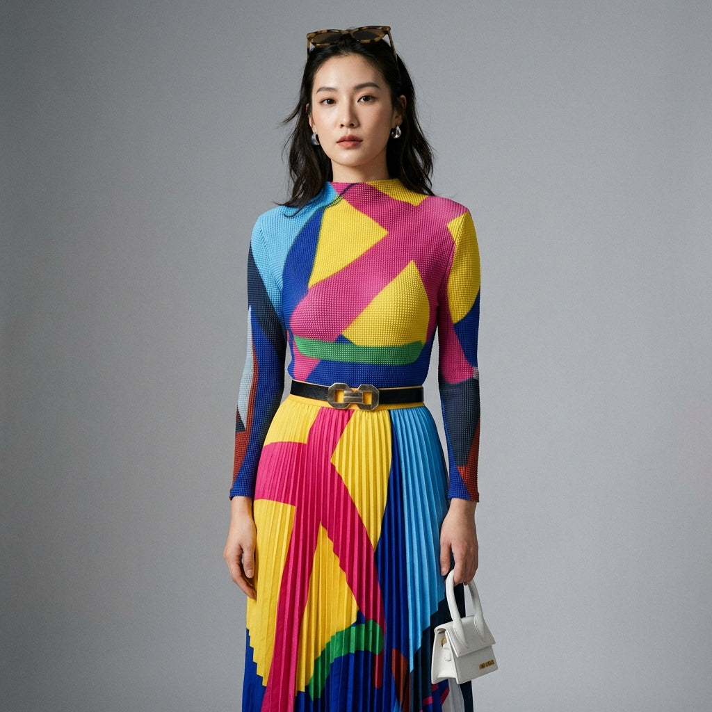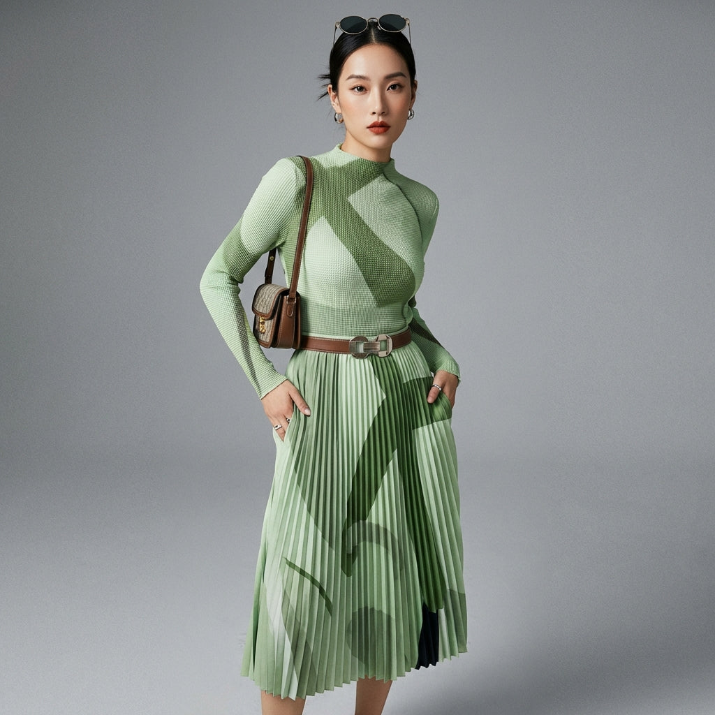 - Tipo: Conjunto de dos piezas, Plisado, Talle alto. Un corte fluido y favorecedor que realza la silueta con elegancia.