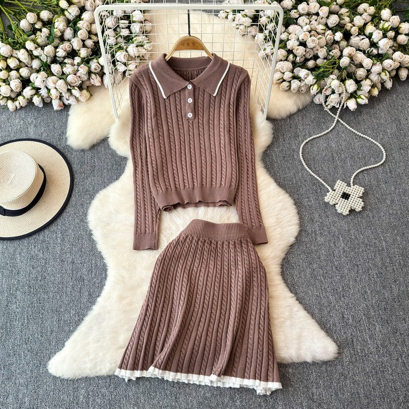 - Tipo: Conjunto de falda y jersey. Un look coordinado que asegura una apariencia chic y sofisticada.