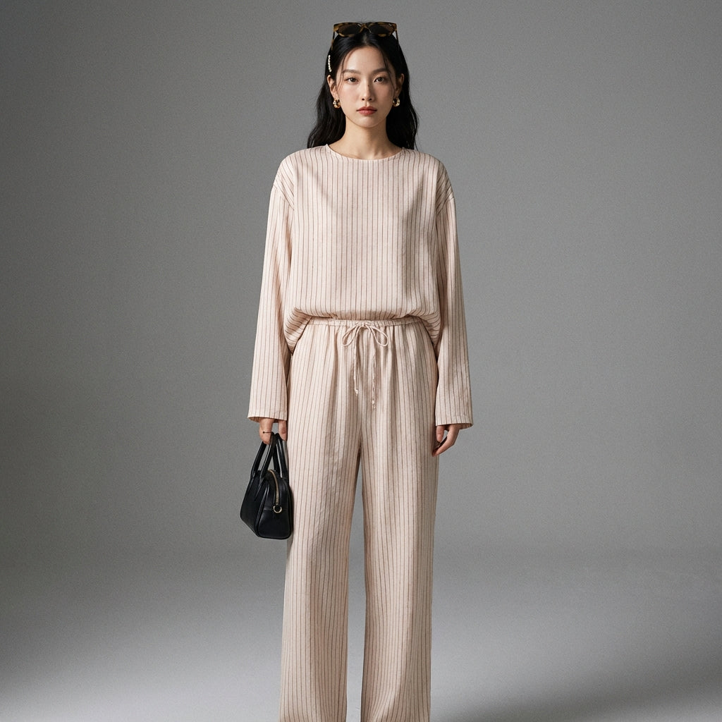 - Tipo: Conjunto informal, Blusa holgada, Pantalón ancho. Un corte cómodo y elegante, ideal para diversas ocasiones.