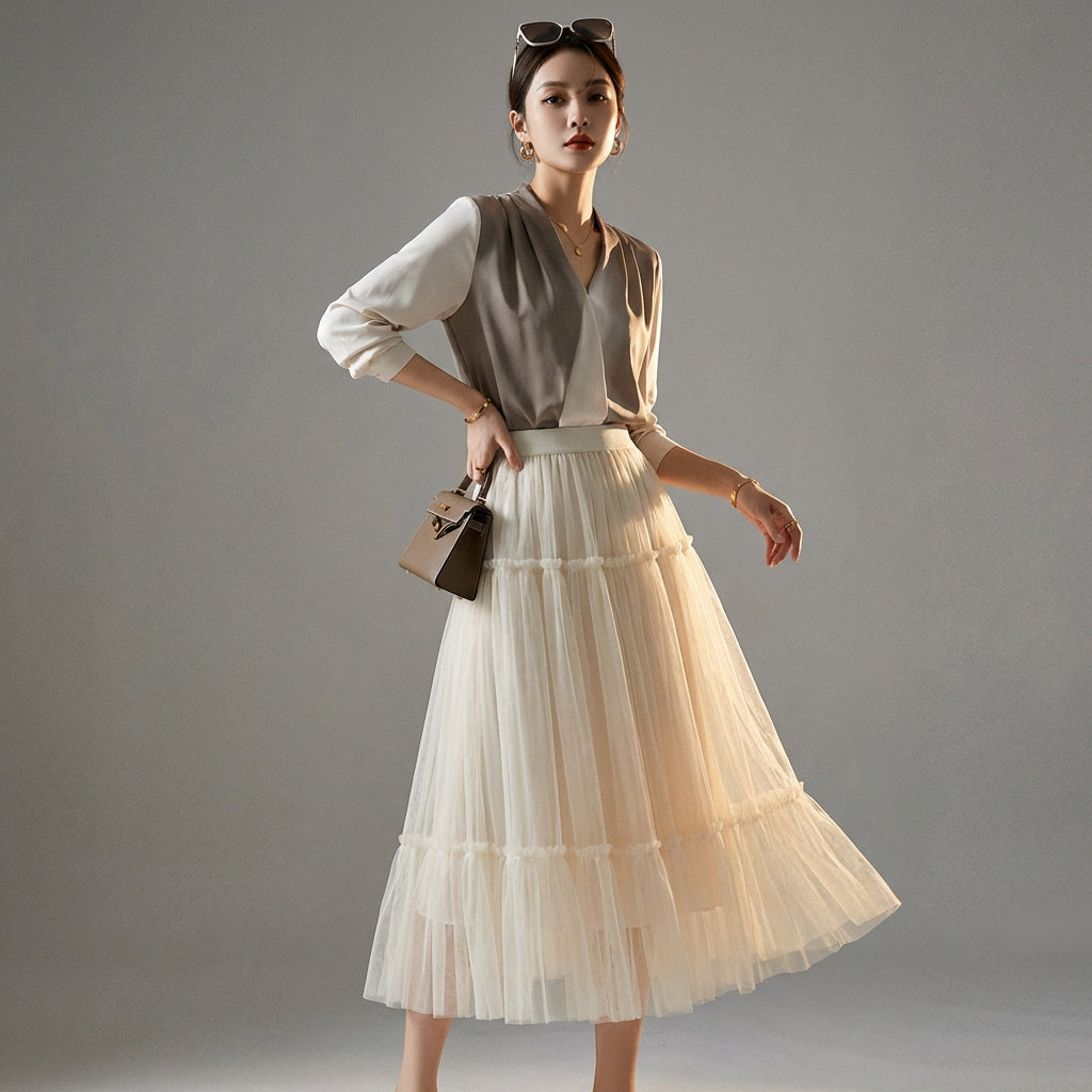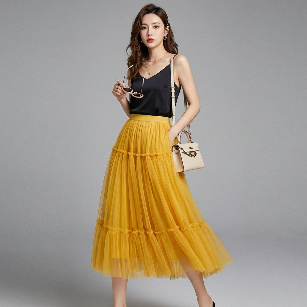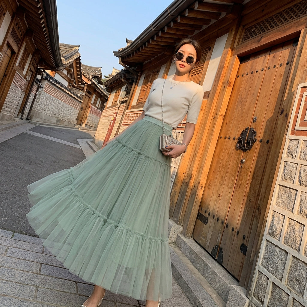 - Estilo: Moda coreana, Elegante, Romántico, Tendencia. Esta falda encarna la dulzura y el refinamiento de la K-fashion, ideal para un look sofisticado y contemporáneo.