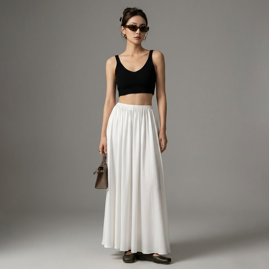 - Estilo: Moda coreana, Elegante, Minimalista. Esta falda encarna la elegancia discreta de la moda coreana, ideal para un estilo urbano o un atuendo más sofisticado.