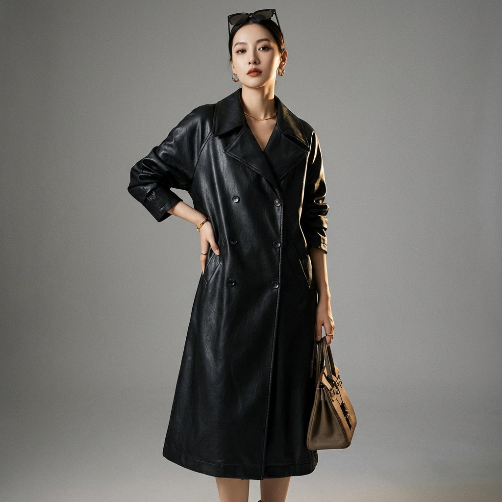 - Tipo: Largo, Con Cinturón, Doble Abotonadura. Su corte largo y su cinturón ajustable realzan la silueta, mientras que la doble abotonadura añade un toque clásico y elegante.