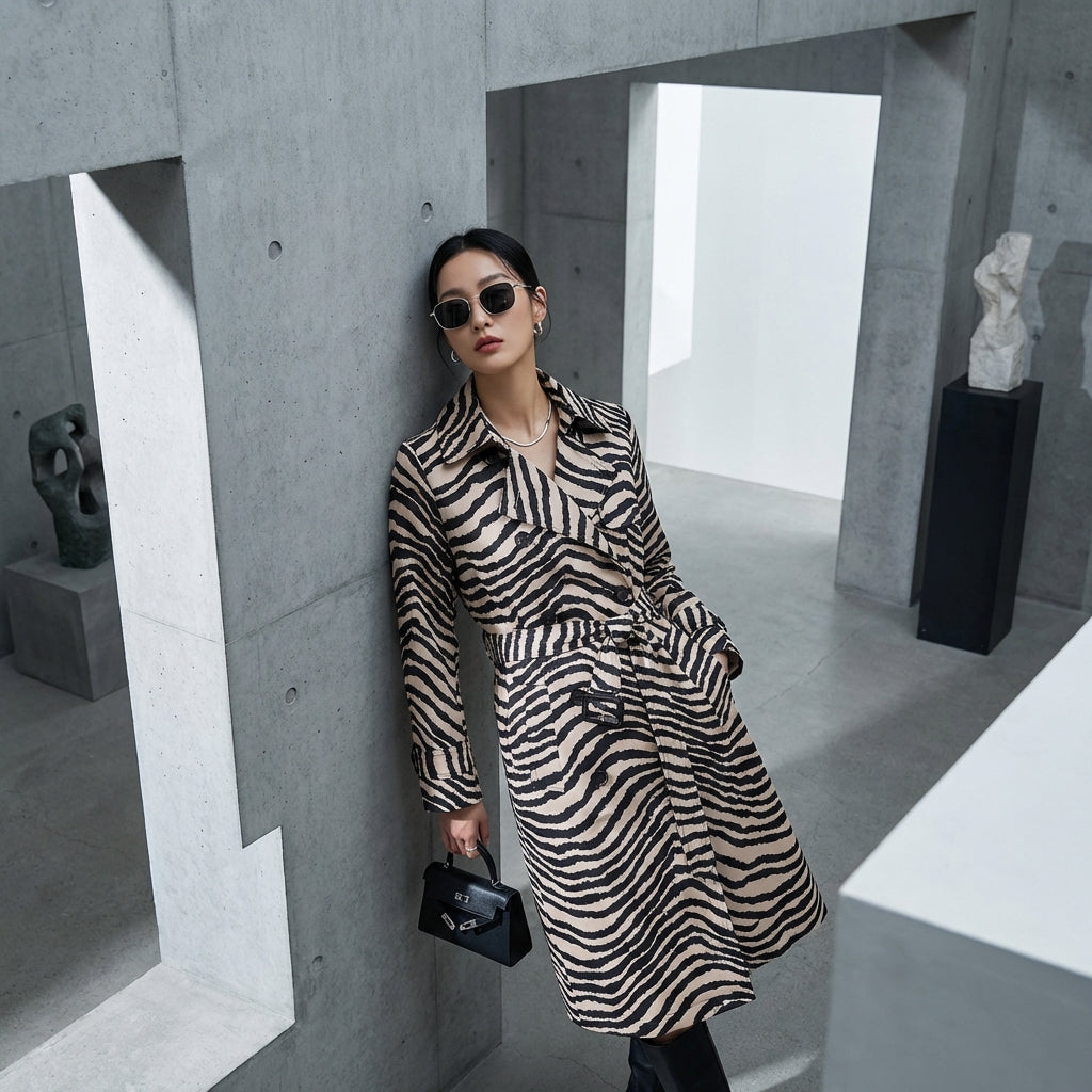 Adopta un look atemporal con nuestra gabardina a rayas, perfecta para realzar tu estilo. Con un cuello clásico y un elegante cinturón, se ajusta perfectamente a tu silueta para un look chic y sofisticado. 🍂