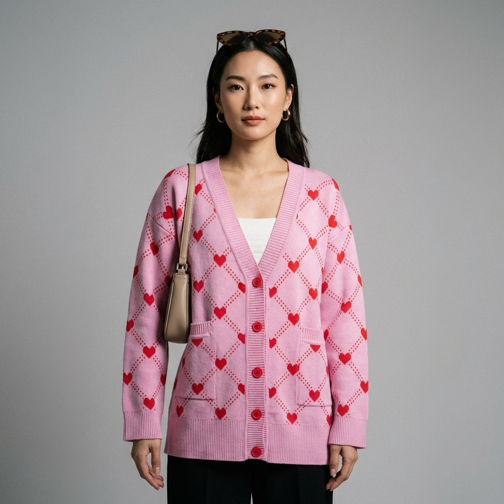 Adopta un look suave y moderno con nuestro cárdigan jacquard adornado con el motivo 'Love'. ¡Este acogedor suéter es perfecto para añadir un toque de romanticismo a tus atuendos de otoño e invierno, mientras te envuelve en calidez y estilo! ❤️