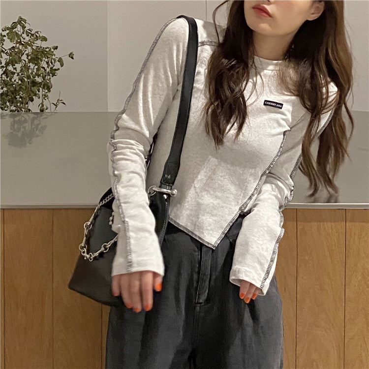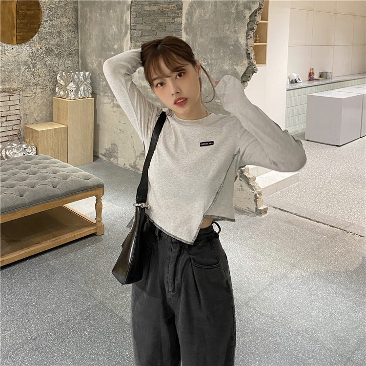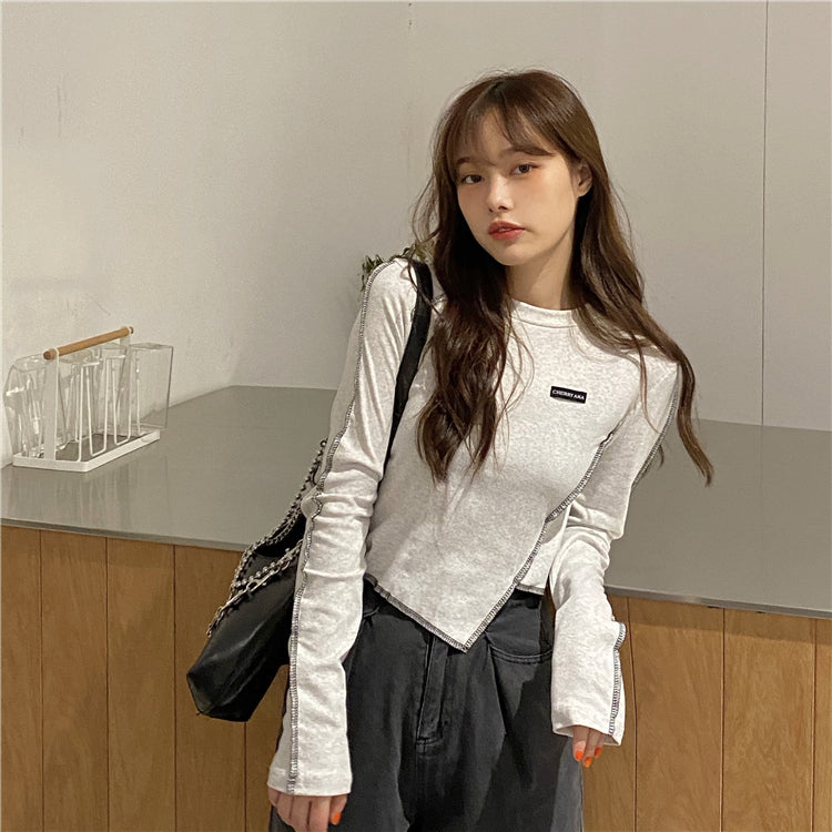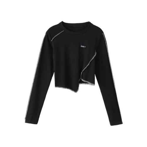 Este jersey tiene una bonita costura asimétrica que deja entrever tu vientre. Es apreciado por las jóvenes coreanas porque tiene un corte singular. Este top está disponible en negro y blanco. Es un jersey asimétrico muy cómodo.