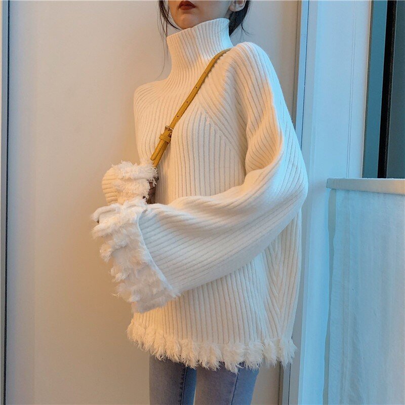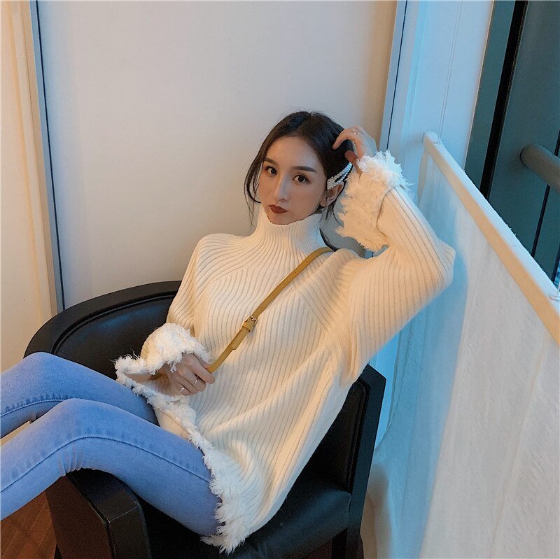 Este jersey coreano es un cuello alto cálido.