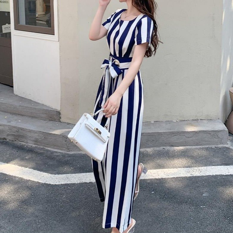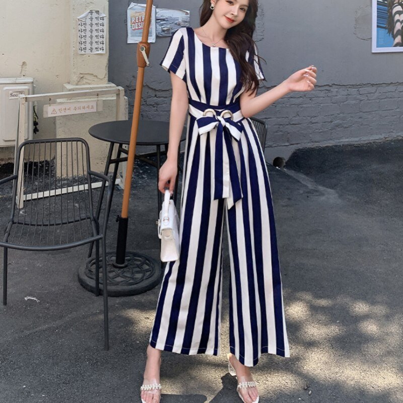 ¿Te gusta la moda coreana? ¿Buscas un mono? Este bonito modelo tiene rayas verticales azules. Es un mono muy práctico para el día a día. Tiene un aire elegante y un bonito cinturón con un lazo.- Tipo: Mono de rayas