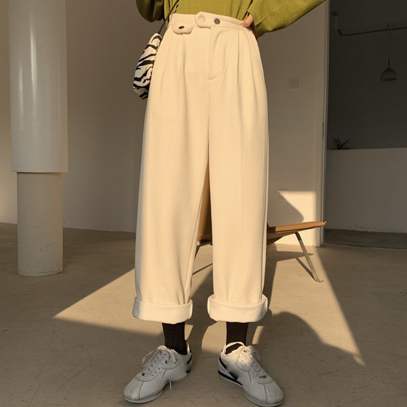 Un pantalón de cintura alta muy de moda en Corea del Sur. Suave y cómodo, es ideal para ir a clase y salir.