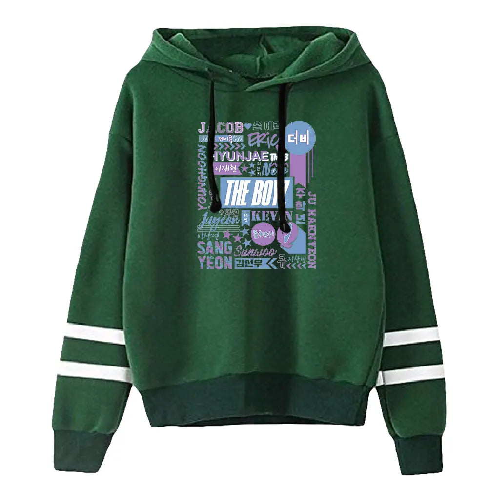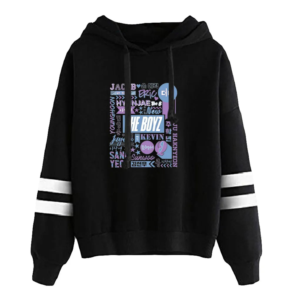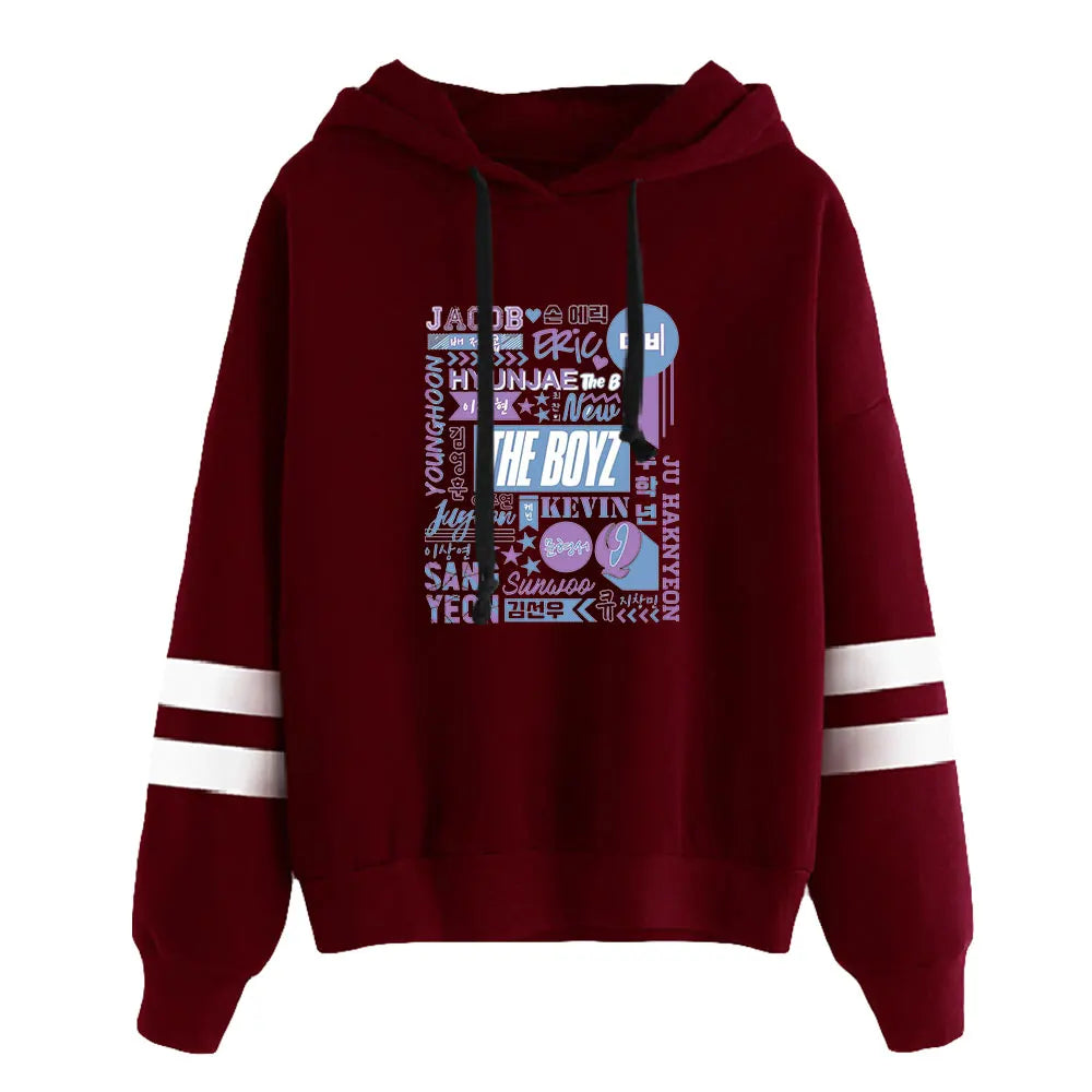 Celebra a cada miembro de The Boyz con la Sudadera con Capucha 'The Boyz Names', un homenaje a toda la formación del grupo. En esta sudadera con capucha, los nombres de Sangyeon, Jacob, Younghoon, Hyunjae, Juyeon, Kevin, New, Q, Haknyeon, Sunwoo y Eric se muestran con orgullo, creando una pieza de colección invaluable para los fans. Es una forma elegante de mostrar tu apoyo y mantenerte conectado con el espíritu K-pop.