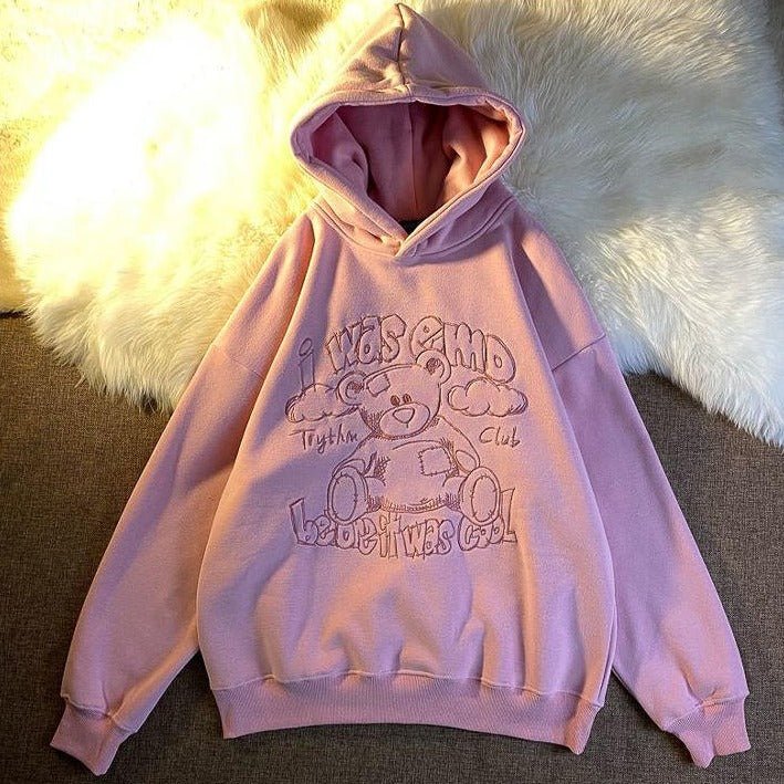 Si te encantan los ositos de peluche, te encantará este hoodie coreano. Es súper lindo y está disponible en varios colores. Tiene un oso de peluche bordado. La tela es suave y cómoda.