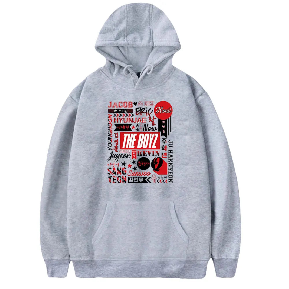 Deja que tu amor por el K-pop brille con nuestra Sudadera con capucha 'The Boyz Pop Art', una prenda que encarna la energía y la creatividad del movimiento artístico Pop Art. Esta sudadera con capucha, adornada con palabras estilizadas que forman un diseño cautivador, es una declaración de moda para los fans del grupo The Boyz. Es la pieza perfecta para destacar en la escena streetwear coreana y en los eventos de fans este otoño.