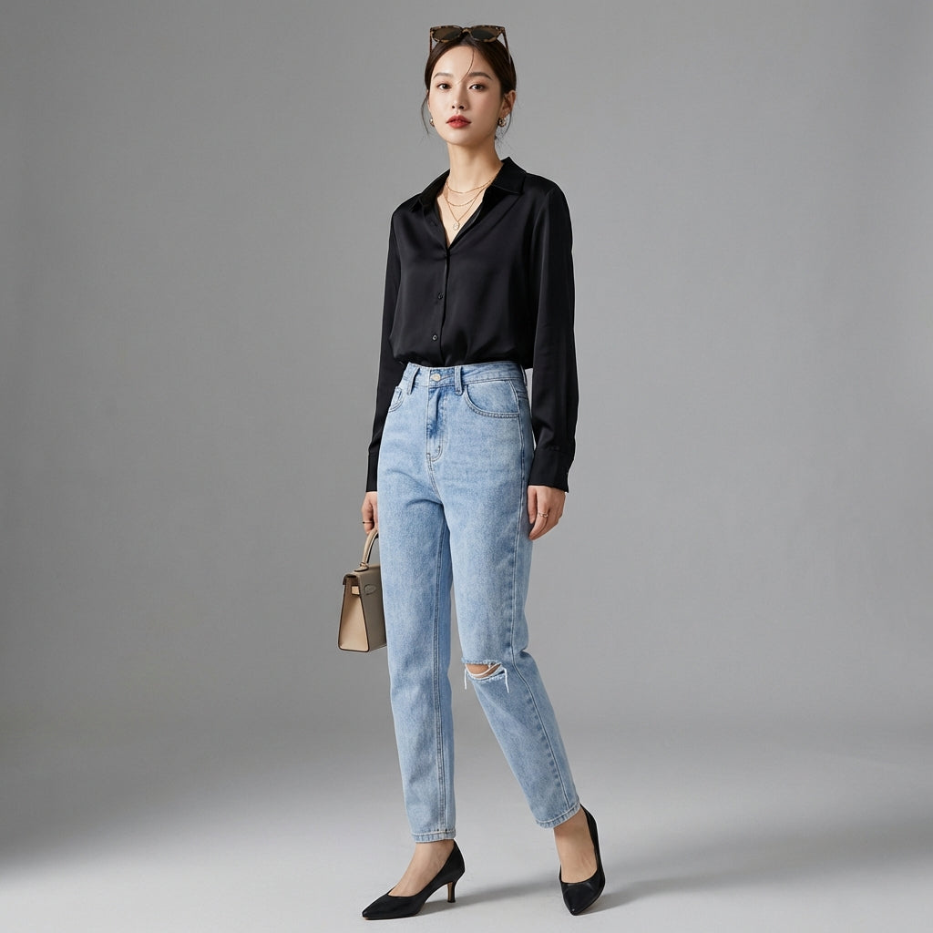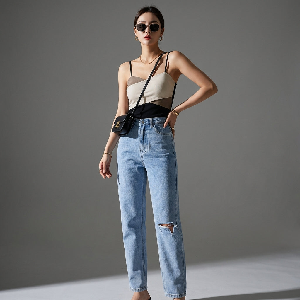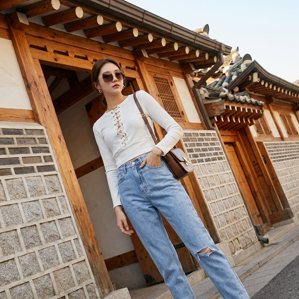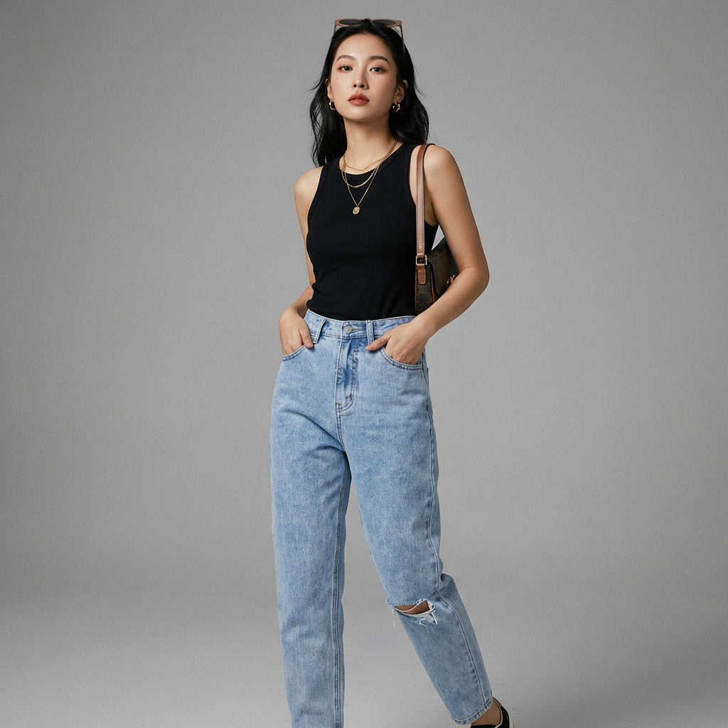 - Estilo: Streetwear, K-fashion, Urbano. Estos jeans encarnan el espíritu rebelde y moderno de la moda coreana, perfectos para expresar tu personalidad.