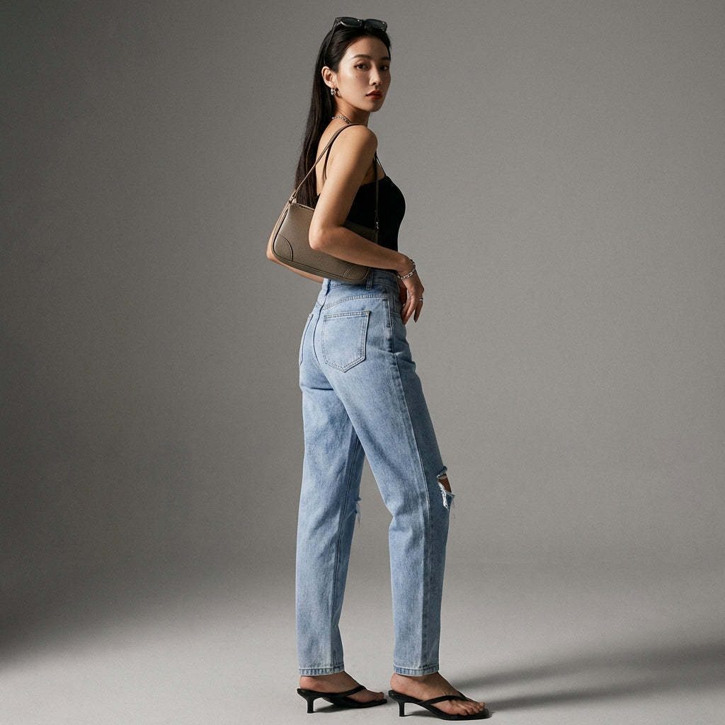 Adopta un look casual y a la moda con nuestros jeans rectos de tiro alto, inspirados en el estilo BF. Estos pantalones de mezclilla presentan un corte ancho y detalles rasgados para un estilo urbano y con mucho rollo. ¡Perfectos para todas las estaciones, aportan un toque de audacia a tu armario! ✨