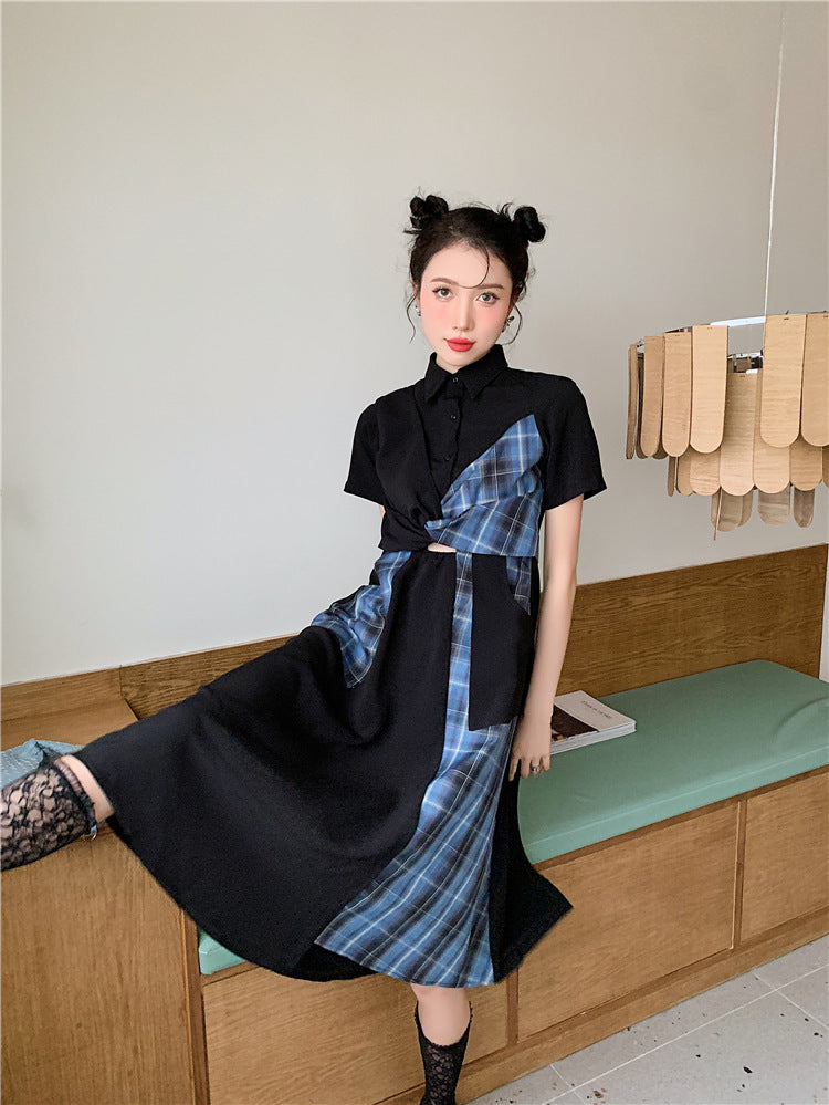 Eleva tu guardarropa con nuestro Vestido a Cuadros Azules y Negros, una elección perfecta para un look a la vez suave y con estilo. Esta pieza única presenta un diseño irregular que acentúa una sofisticación relajada. ¡Un imprescindible para empezar el verano con un toque coreano elegante! 🌼