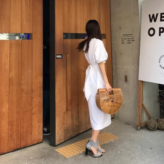 ¡Descubre nuestro Vestido Coreano de Algodón! Un look sencillo y moldeado por la influencia de Corea del Sur. Un vestido ligero con un bonito lazo que ciñe la cintura.
