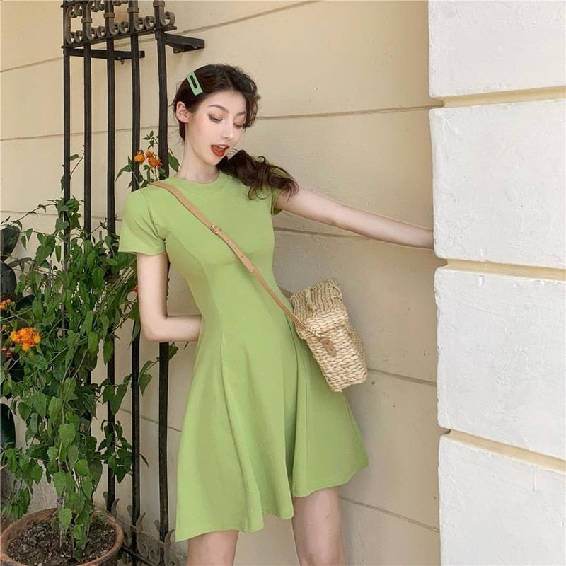 El vestido de manga corta es un clásico para el verano en Corea del Sur. Es un vestido muy de moda que se puede llevar en muchas situaciones. Está diseñado en un tejido agradable y ligero.