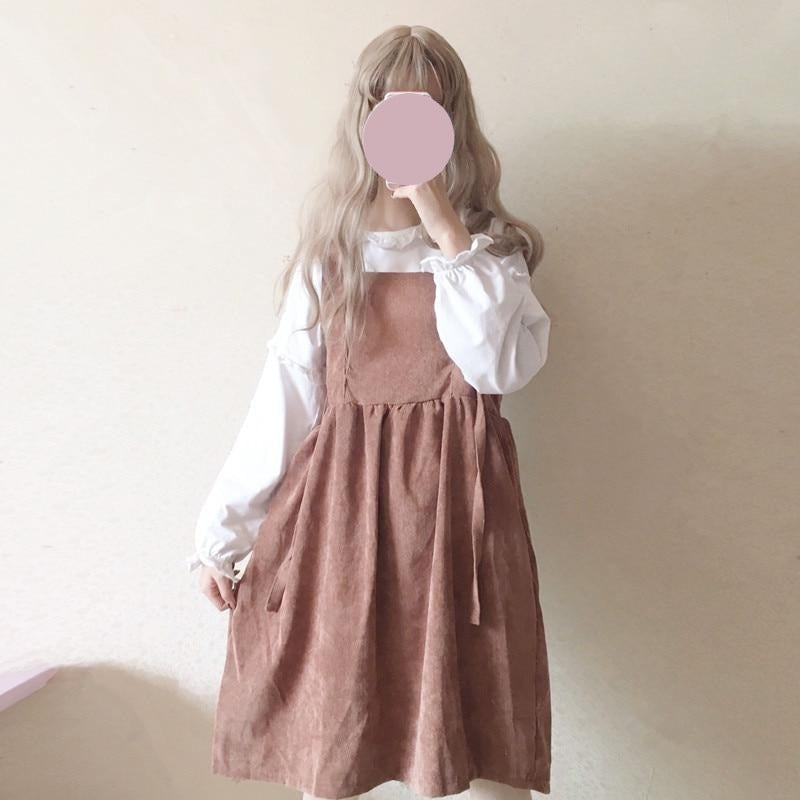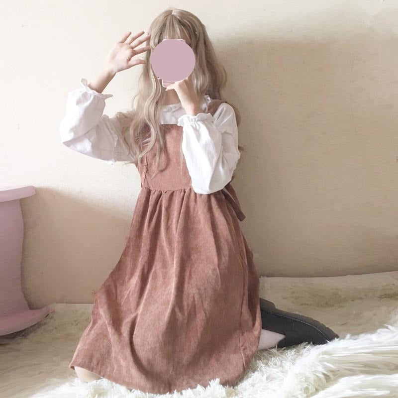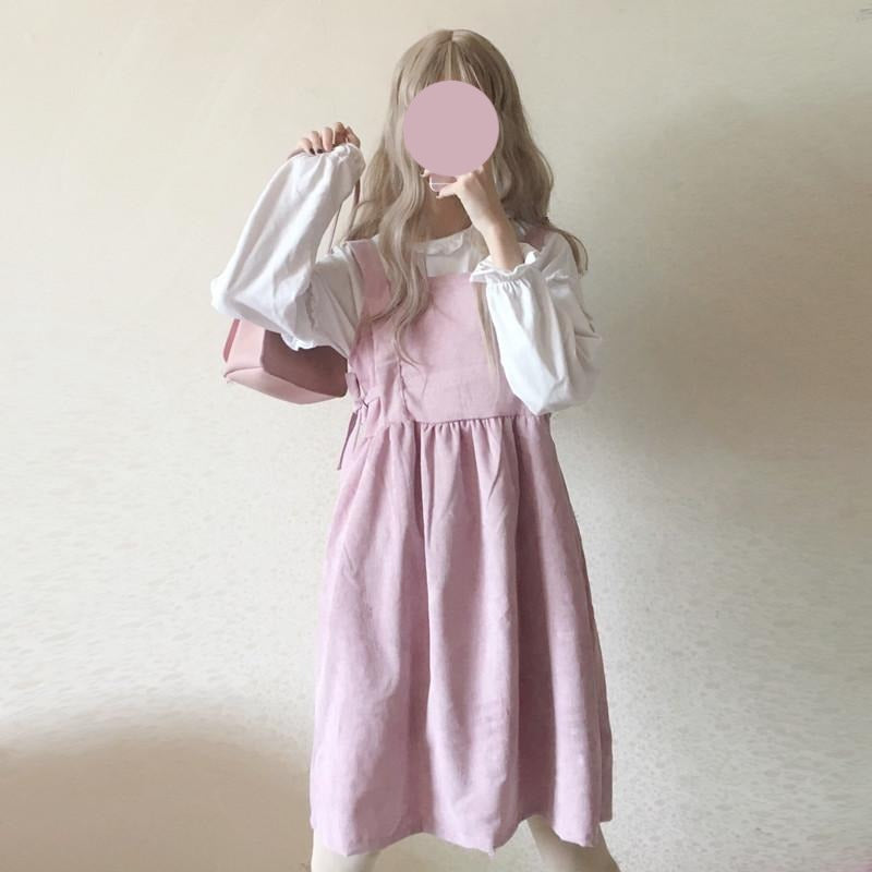 Este vestido coreano es un atuendo espléndido para las jóvenes que desean un estilo tierno y clásico. Vuelve a lo básico con este magnífico vestidito rosa o marrón.