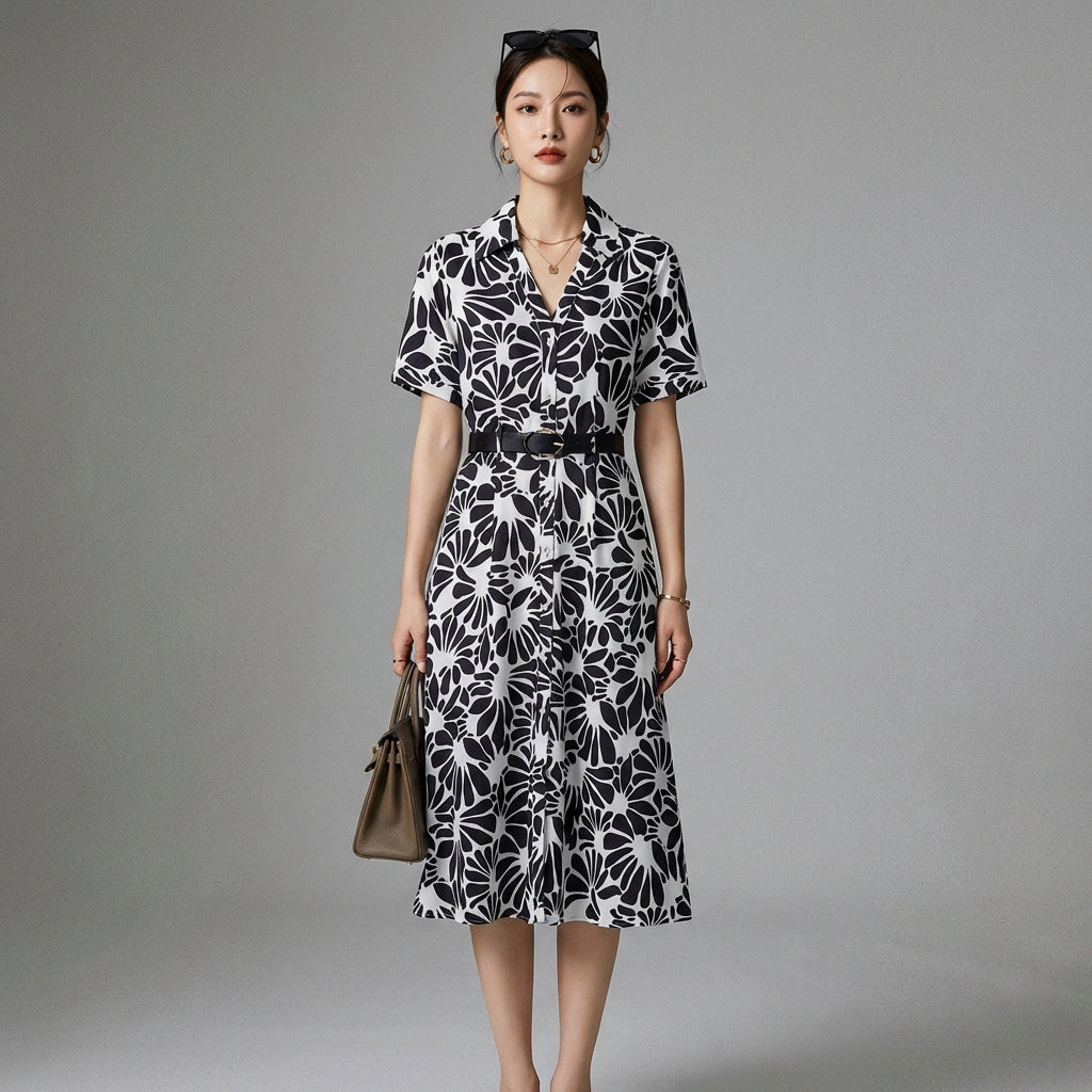 Adopta un look chic y casual con nuestro vestido camisero estampado con cuello de solapa. Sus mangas cortas y su corte elegante lo convierten en la prenda perfecta para un estilo atrevido y moderno, ¡ideal para cualquier ocasión! ☀️