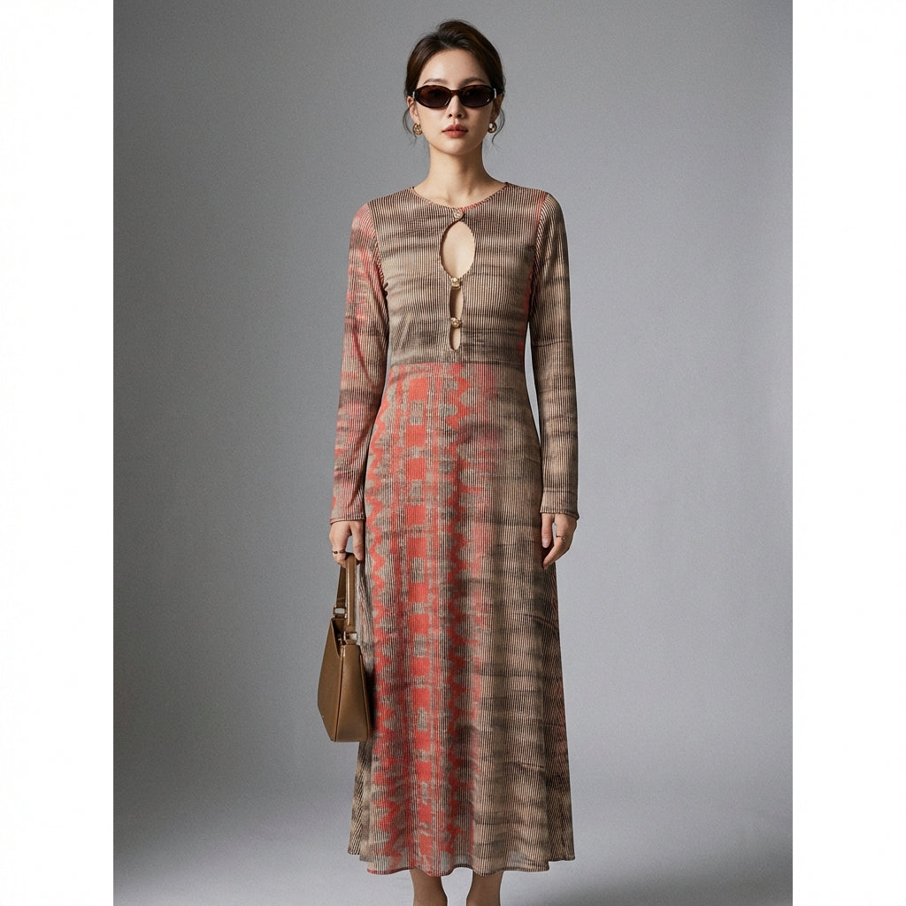 Descubre nuestro vestido largo de cuello redondo, con mangas micro-acampanadas y un elegante corte slim en A. ¡Su silueta favorecedora y su diseño sofisticado lo convierten en un imprescindible para cualquier guardarropa chic! ✨