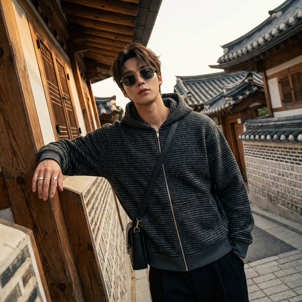 - Style : Streetwear, Minimaliste, K-fashion. Ce cardigan incarne l'esthétique décontractée et tendance de la mode urbaine coréenne, idéale pour un look moderne et sans effort.
