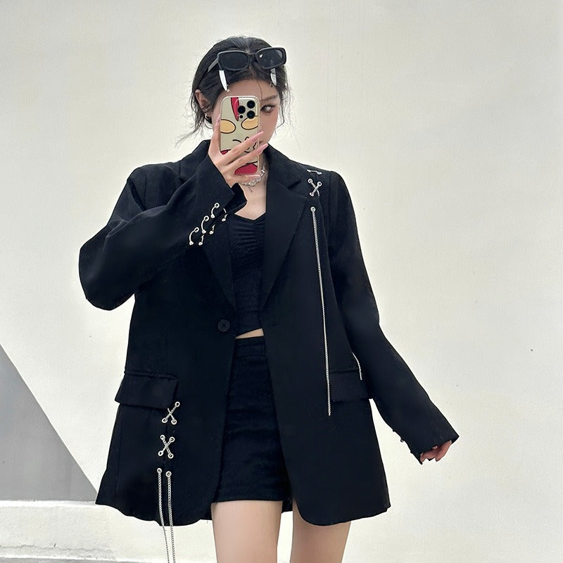 En choisissant cette veste cardigan chaîne coréenne, vous optez pour une pièce unique qui enrichira votre garde-robe avec une touche de mode coréenne sophistiquée.
