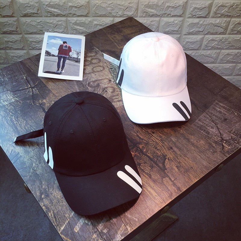 Vous souhaitez avoir un style Ulzzang ? La casquette est un élément essentiel du look coréen Ulzzang. Cette casquette double Ulzzang est une casquette à lanière qui possède deux traits imprimés.